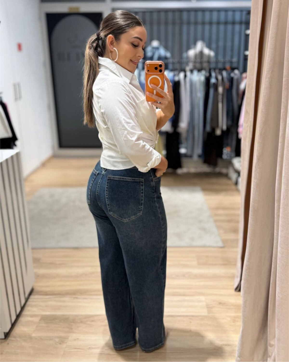 Modelo mais larguinho na perna, super confortável e perfeito para um look moderno. Ficam incríveis tanto com tops mais justos como com peças oversized.
