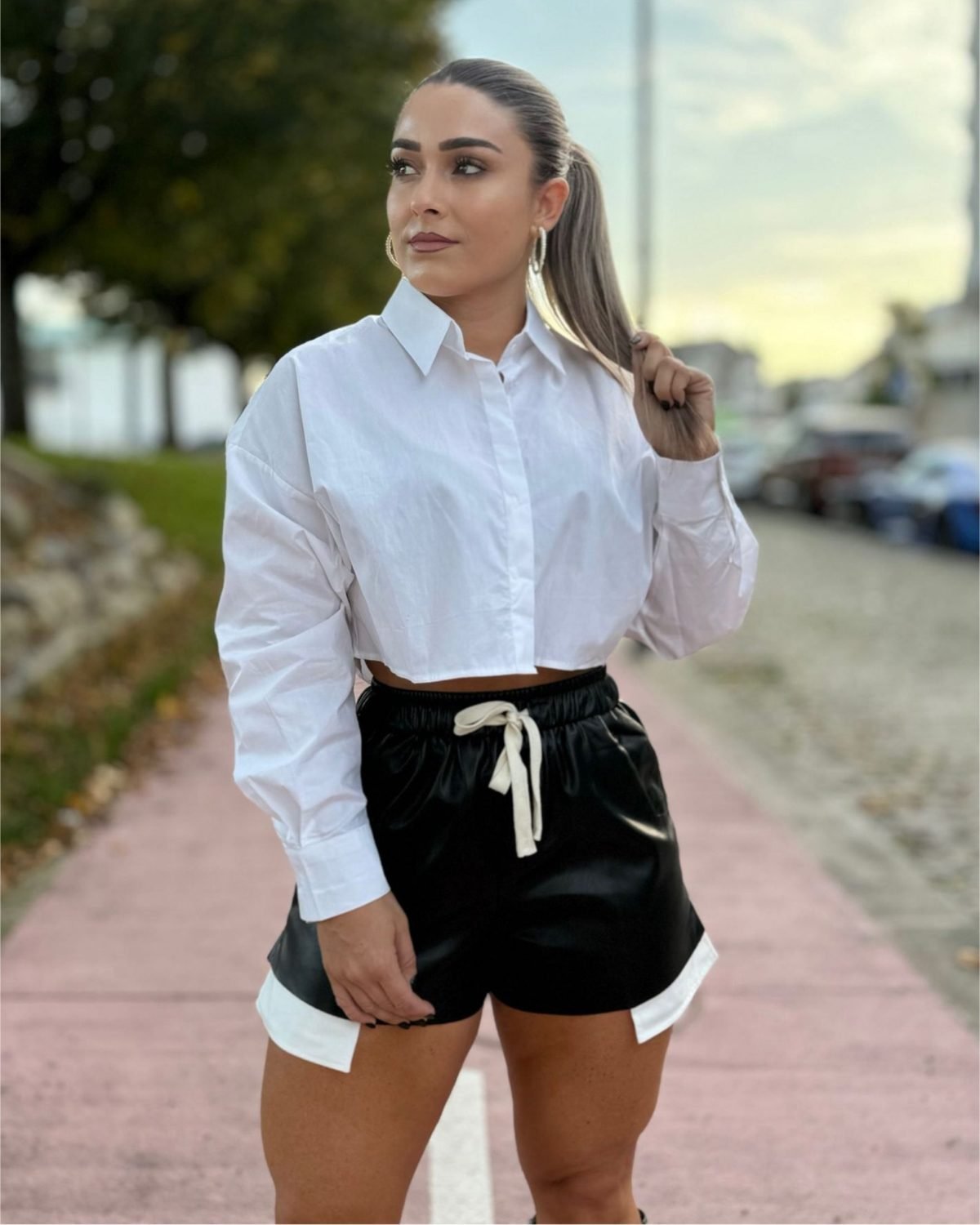 Camisa branca curta MOCHY super moderna, com corte reto e aquele ar clean que combina com tudo. Tem gola clássica e mangas compridas.
