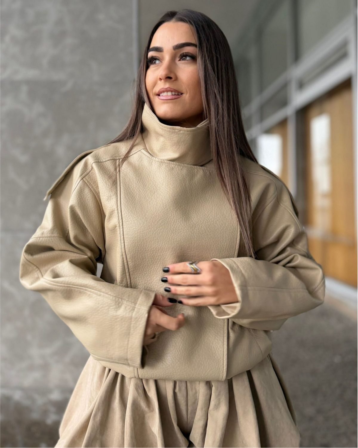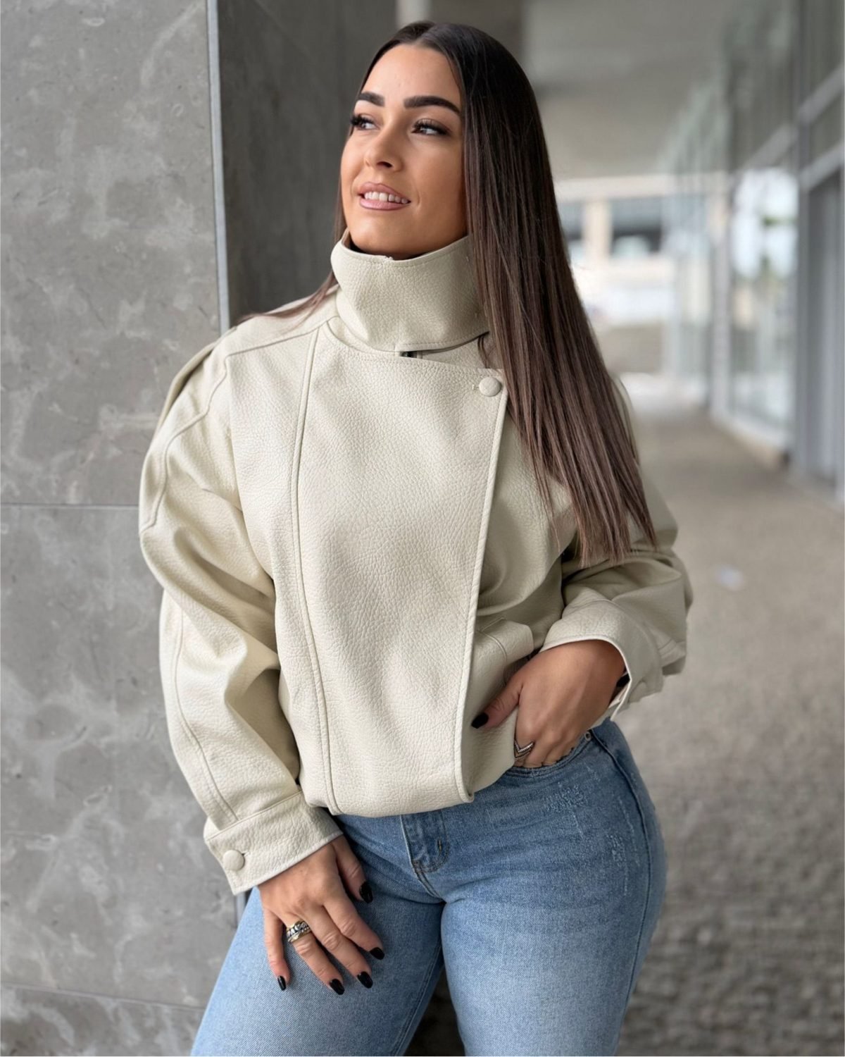 O clássico que nunca sai de moda. Este casaco em ecopele é aquele toque cool que faltava no teu look de inverno. Confortável, quentinho e super versátil.