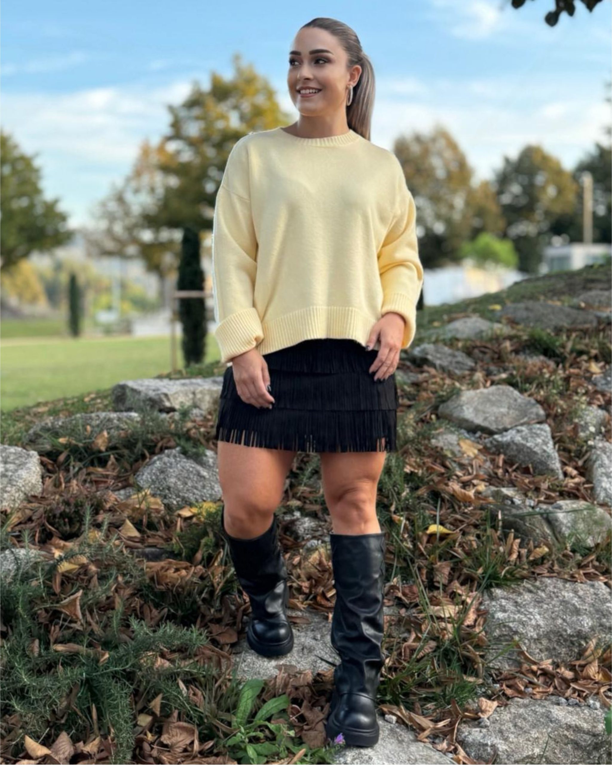 Malha em amarelo manteiga, com aquele ar fofo e luminoso que muda logo o mood do look. Tem um corte soltinho e punhos largos que dão ainda mais estilo.