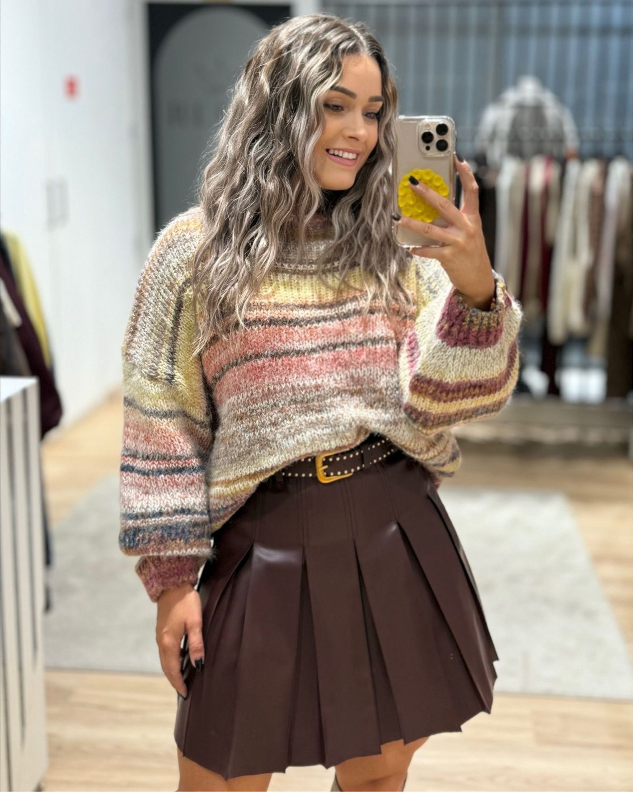 Aquela saia que transforma o look sem esforço em ecopele, com cinto e um corte que assenta mesmo bem!