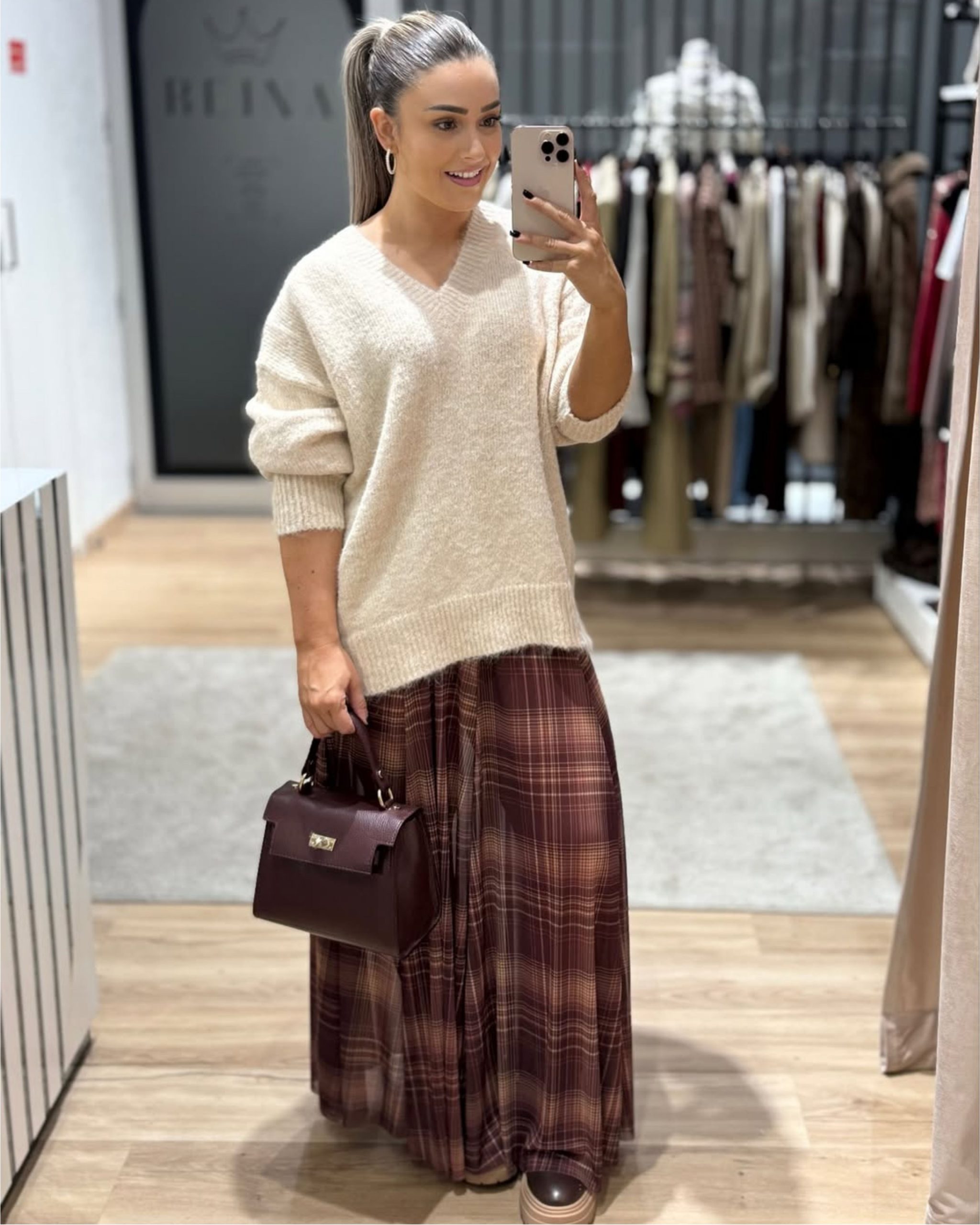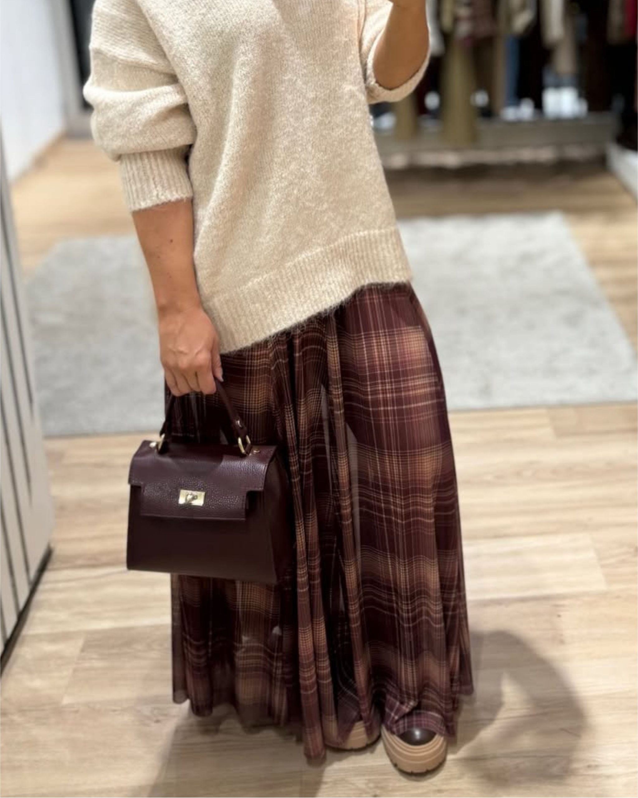 Saia comprida da Lumina, super fluída e com aquele padrão axadrezado que nunca sai de moda. Ideal para looks de outono/inverno, combina lindamente com camisolas de malha e botas.