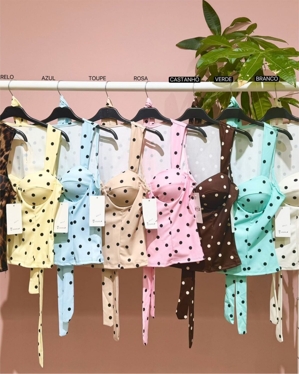 Com copa estruturada que valoriza o peito e um corte super feminino, fica perfeito tanto para um look mais arranjado como para o dia a dia. O padrão às bolinhas dá aquele toque leve e divertido, e ainda tens várias cores para escolher