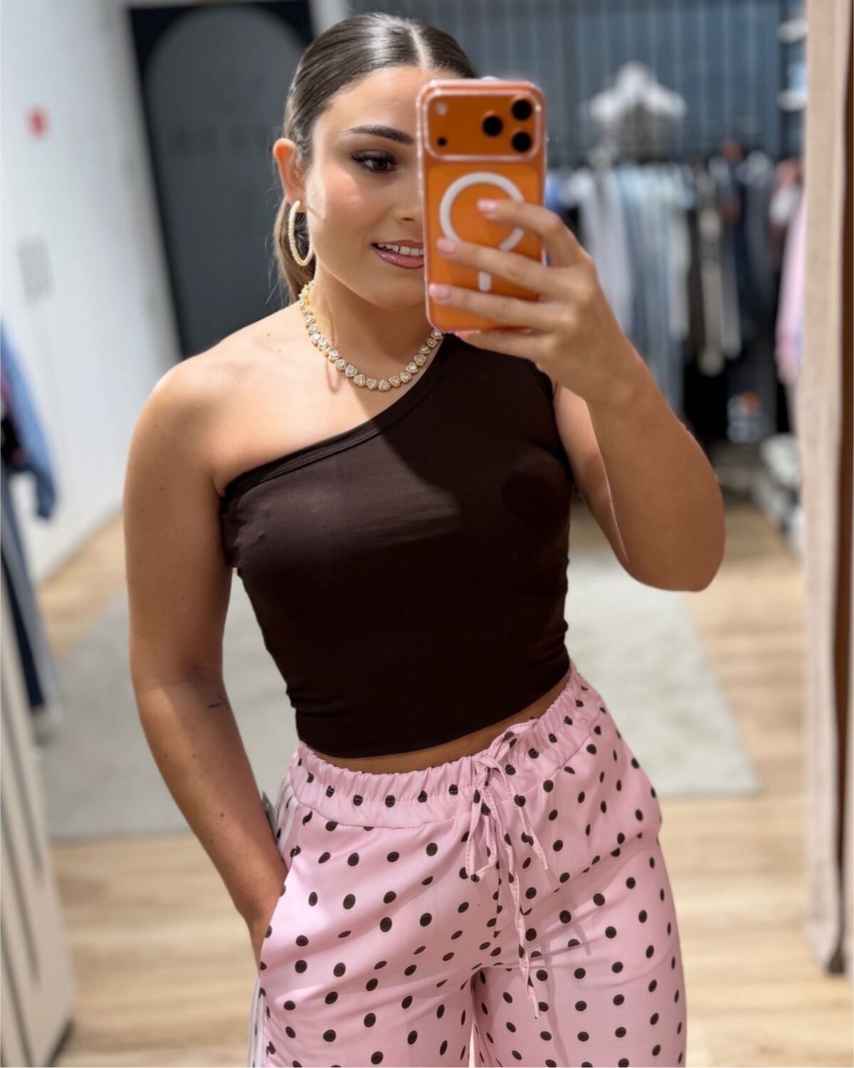 Top Lumina: simples, elegante e com aquele toque diferente. O modelo assimétrico valoriza o ombro e dá um ar mais sofisticado ao look, enquanto o tecido ajusta-se ao corpo na perfeição.